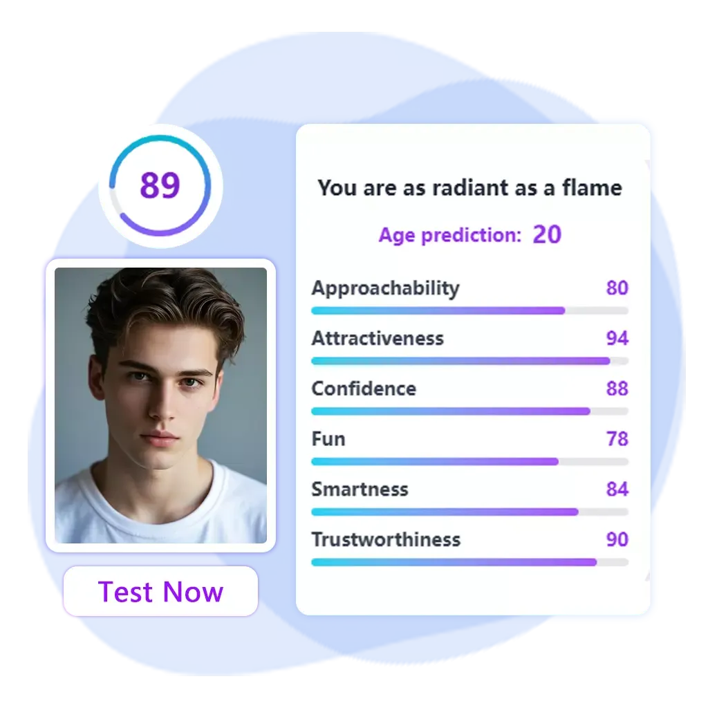 Test your facial attractiveness with our free online AI attractiveness test tool. Upload your photo and test your attractiveness instantly.With just one click, you'll find your beauty score so you can improve your attractiveness more scientifically.