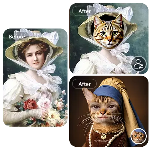 Unlike common face swap tools, the two features of our animal face swap give you more creative freedom and more unpredictable results.